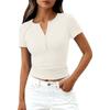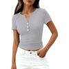Haut T-shirt Décontracté Mode Femme Couleur Nouvelle Manches Courtes Bouton Décoratif Col en V — acheter en ligne à petit prix sur Joom