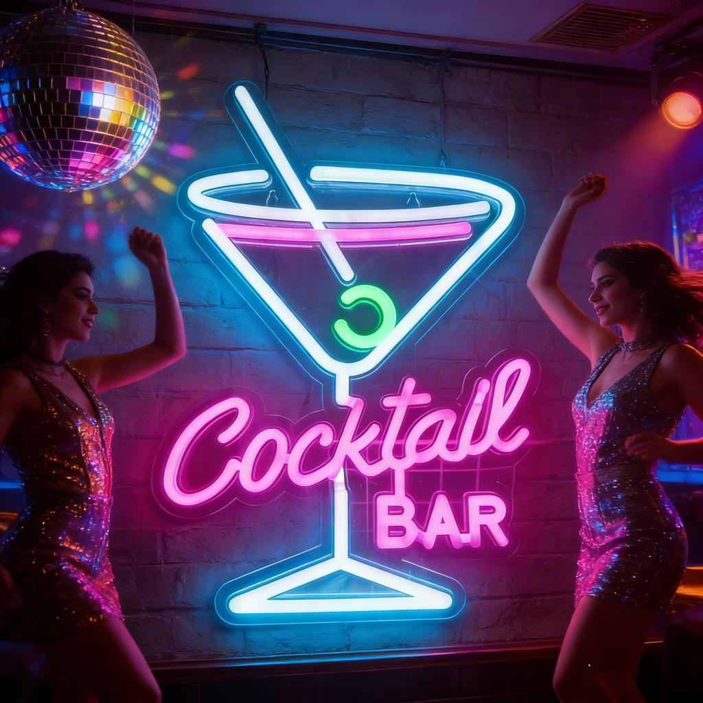 Vintage Neon Cocktail Bar Sign - Retro City Skyline Metal Art with Colorful Glow, Perfect for Home Pub & Cafe Decor — acheter en ligne à petit prix sur Joom