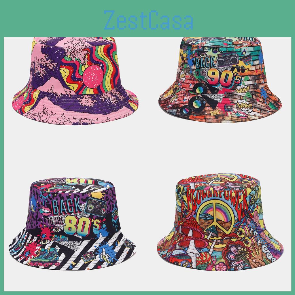 Chapeau de pêcheur en sergé de coton style graffiti rétro avec protection solaire pour les activités de plein air en été