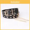 Cette ceinture de taille d'inspiration punk présente un large design de 10 cm fabriqué en faux cuir résistant.. La ceinture mesure 74 cm de long, avec une boucle à pression en métal pour une fixation sécurisée.. Idéal pour les sorties décontractées ou le streetwear tendance; essuyer avec un chiffon humide.