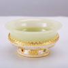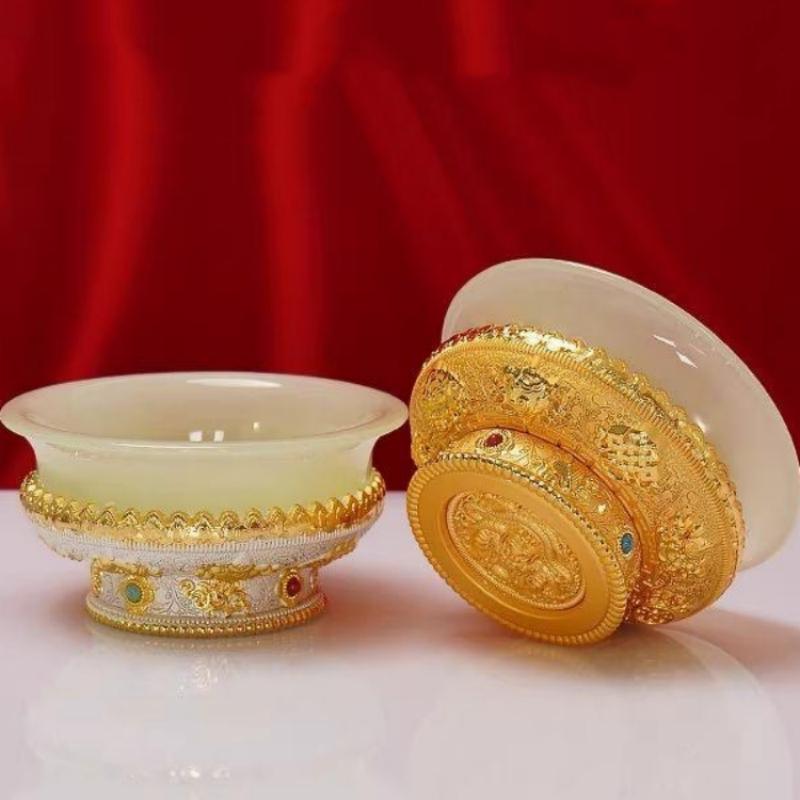 Bol à Ghee Tibétain Doré Alliage de Zinc Coupe d'Eau Bénite Tantrique 10cm Grande Taille Bol Bouddhiste en Pierre Gravé Cadeau Décoratif de Bureau