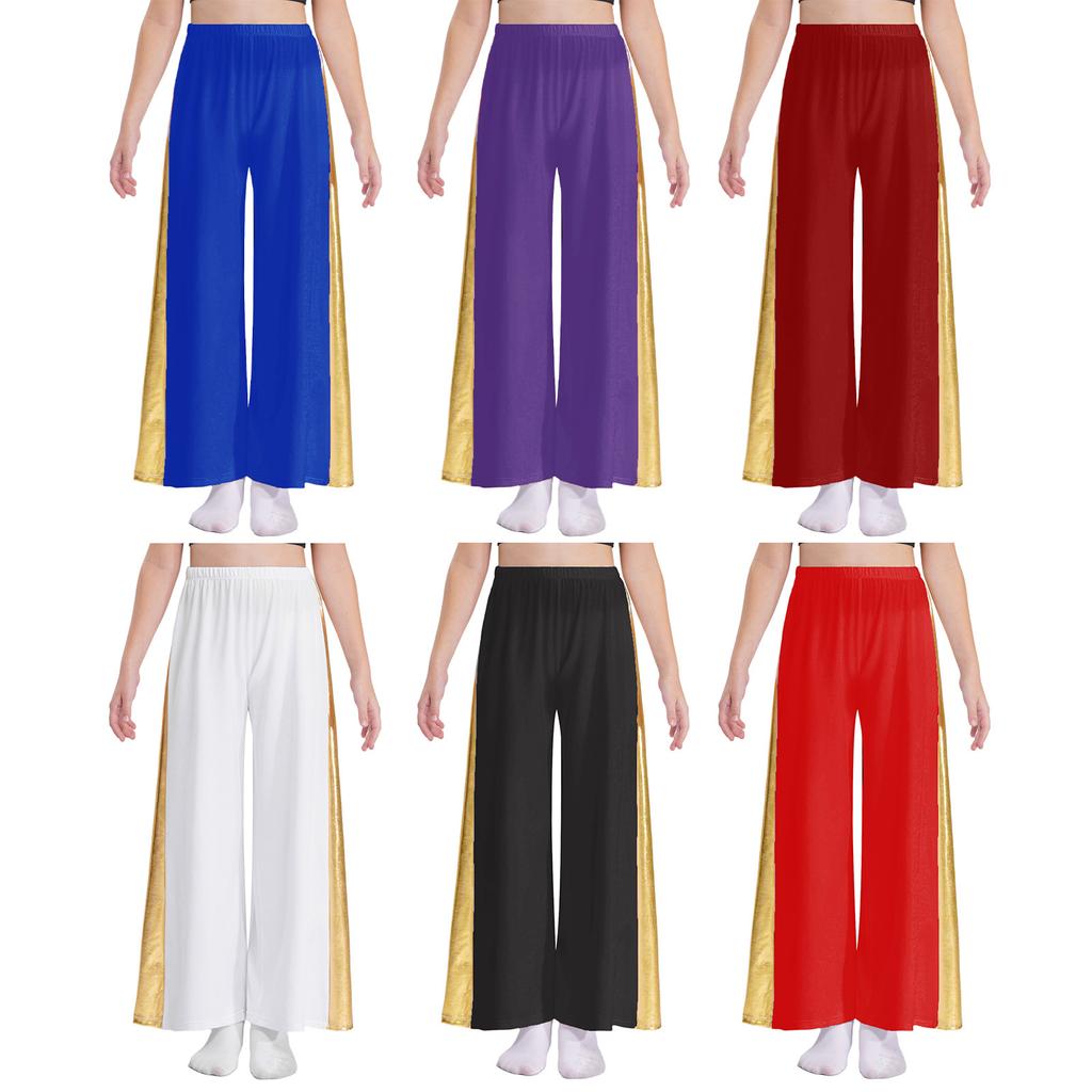 Metallic Patchwork Wide-Leg Pants for Girls: High Waist Elastic Waistband Loose Trousers for Liturgical Dance Ceremony