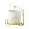 Ceramic Flowerpot Flower Plant Pots Balcony Courtyard Potted Plant Flowerpot with Iron Frame Home Garden Tray