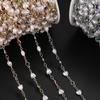 1Meter Stainless Steel Chain Flowers Pearl Beads Flat Link Chains for Necklaces Anklet Supplies DIY Jewelry Making Wholesale