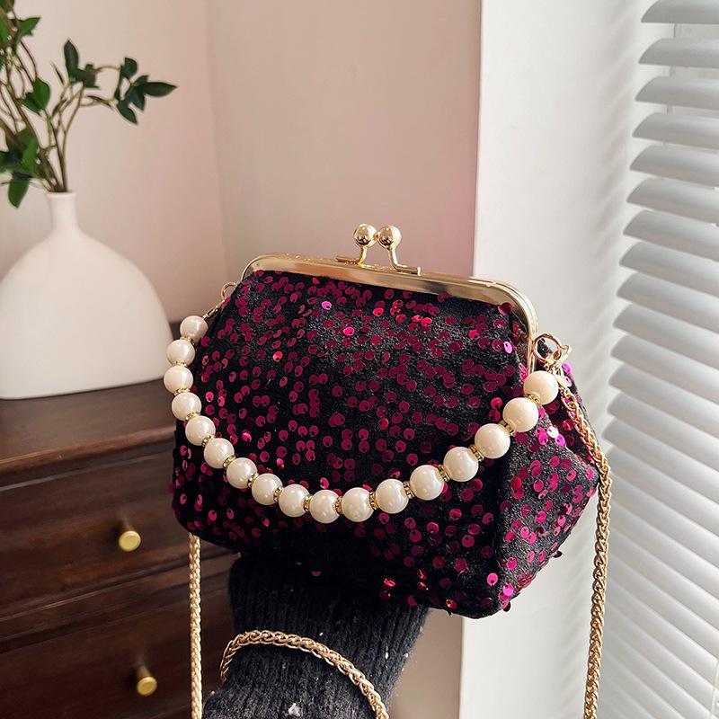 Sac à main tendance personnalisé à boucle clip, sequins, chaîne de perles brillantes, sac bandoulière portable, style exotique, sac de soirée — acheter en ligne à petit prix sur Joom