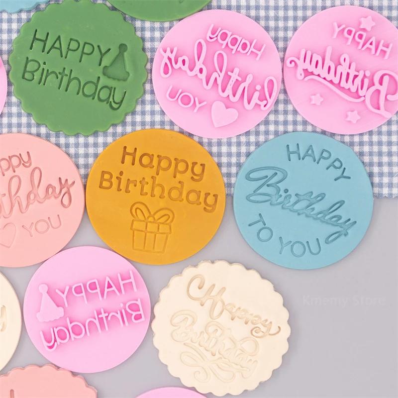 New Happy Birthday Cookie Embosser Mold English Letter Biscuit Embossed Stamp Baby Shower Party Fondant Cake Decorating Tools