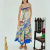 European and American women's clothing, new spring models, graffiti-printed holiday style high-waisted suspender dress