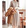 סתיו חורף כתונת לילה עבה צמר אלמוגים כיסים רפויים צבע אחיד חם צבע עגול צוואר מעוות מרקם ארוך שרוול ארוך בגדי בית תרמיים