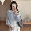 חולצת וינטג' לנשים צרפתי מתוק צווארון תינוק חולצה יומית טמפרמנט נסיעה יומית חולצה לנשים