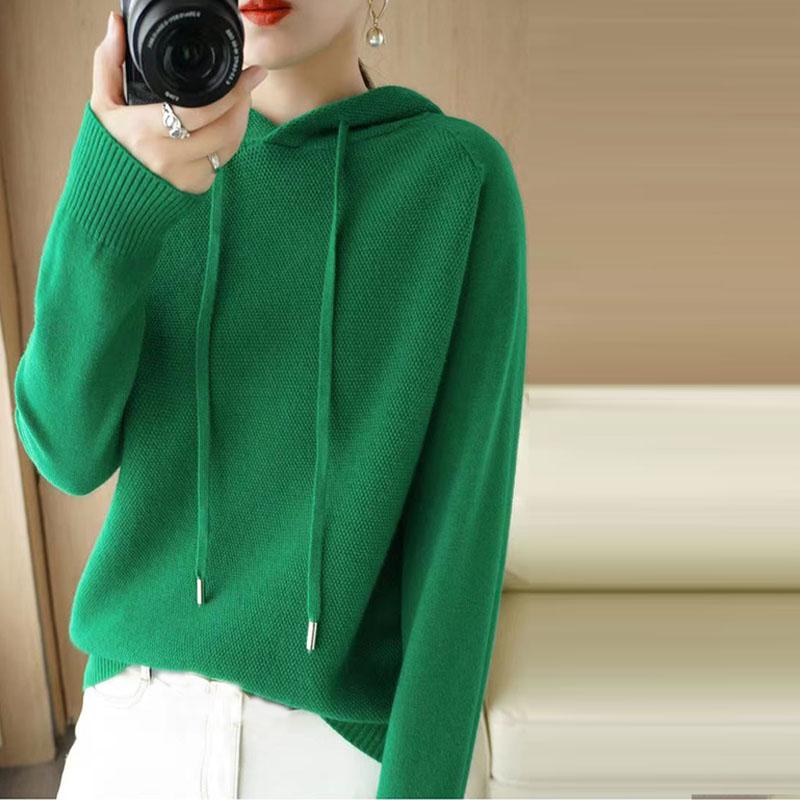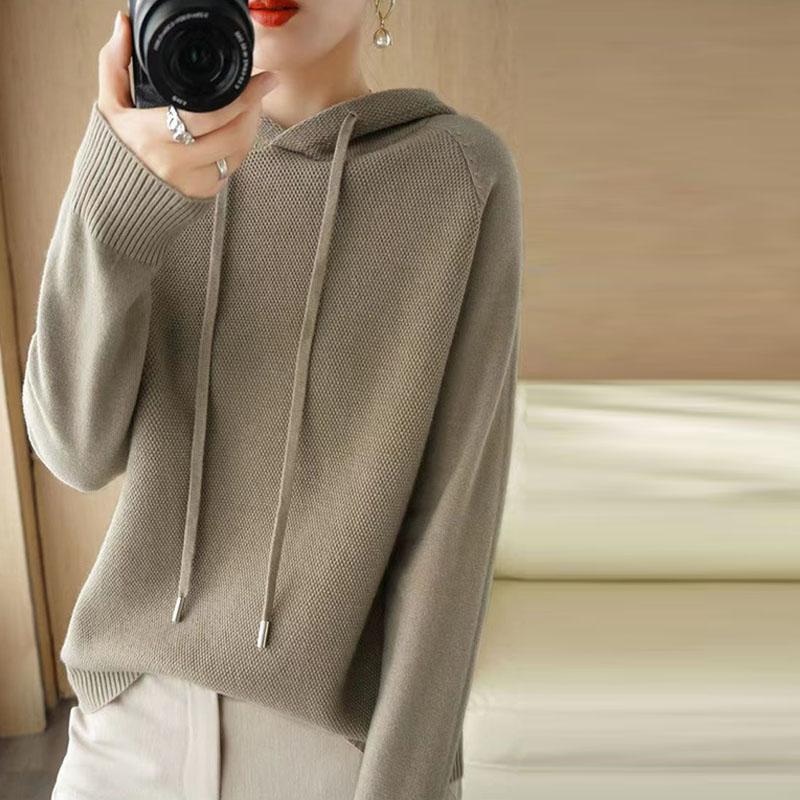סוודרים סוודרים סתיו וחורף סוודרים עם קפוצ'ון לנשים סריגי תחתון רופפים סריגי סוודר מוצק שרוול ארוך סוודר נשים חולצות