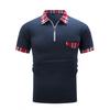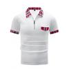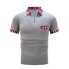 חולצת פולו משובצת קיץ גברים לבן שחור אפור כחול כיסים עם רוכסן לחולצות פולו ספורט שרוול קצר לגברים