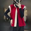 Women's Western-style Round Neck Blocked Sleeveless Autumn Winter Cardigan High-end Vest Knitted Sweater Paired Camisole