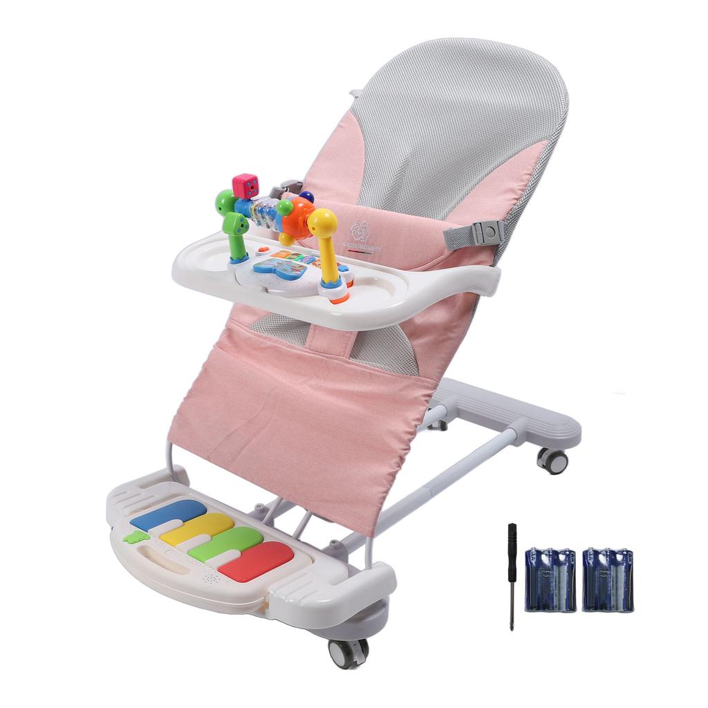 כיסא נדנדה לתינוק כיסא נדנדה לתינוק עריסה עם מוט צעצועים גלגלים מסתובבים מגש אוכל פסנתר פדלים