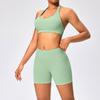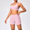 European & American Halter Neck Backless Sports Bra and High-Elastic Seamless Fitness Leggings Yoga Set for Women