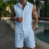 2025 New Summer Men's Vest Casual Loose Sleeveless Shorts Set