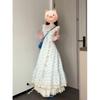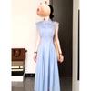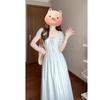 Evnstyle "Holy Island Blue Window" Spring New Mid-Length Nine-Quarter Sleeve Loose Blue Plaid Dress Women