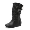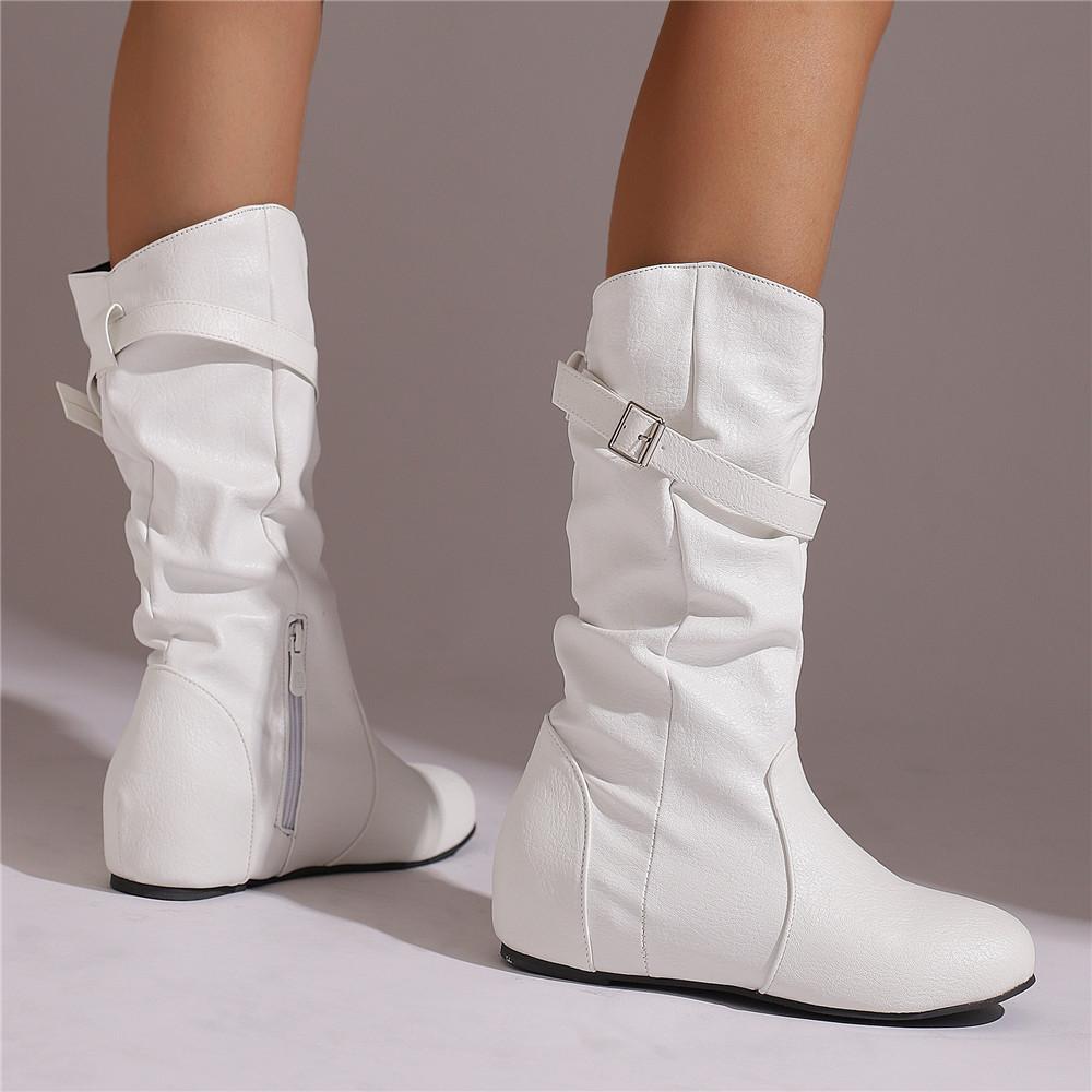 Fashion Women Mid-Calf Boots PU Pleated Boots Female Round Toe Shoes Concise Height Increasing Flat Shoes Autumn Winter Size 34-50