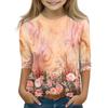 חולצות מודפסות לבנות נוער צווארון עגול שרוולי 3/4 חולצות טי טרנדיות חולצות לאאוטפיט