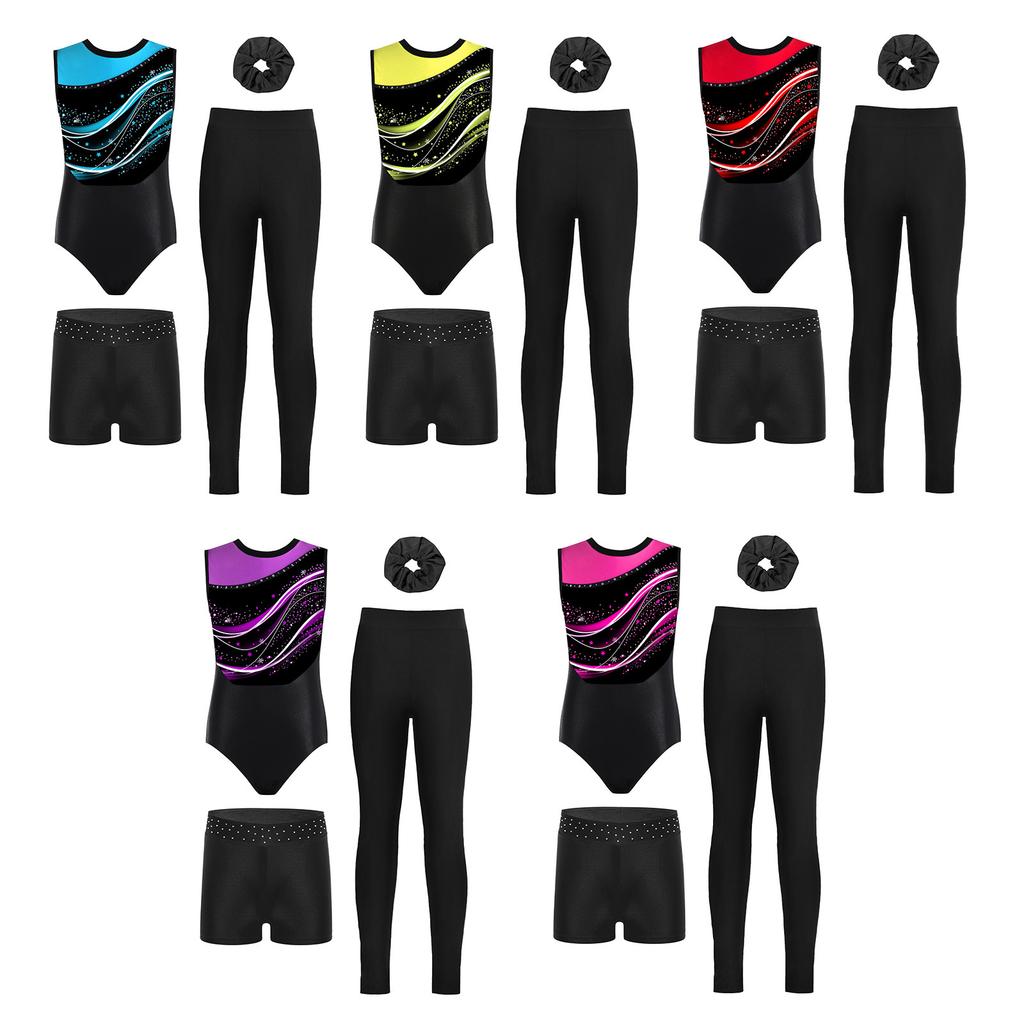 4-Piece Girls Gymnastics Dance Set Sleeveless Color Block Leotard with Rhinestone Shorts Leggings Hair Band בחנות המקוונת של Joom עם ביקורות אמיתיות של משתמשים. לקנות 4-Piece Girls Gymnastics Dance Set Sleeveless Color Block Leotard with Rhinestone Shorts Leggings Hair Band במחיר מציאה