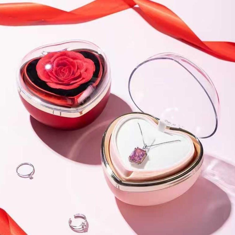 Heart Shape Preserved Flower Flip Ring Box Romantic Birthday Gift Packaging Box Necklace