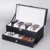 תיבת שעונים זוגית יוקרה קלאסית ארגונית גברים שחור PU עור שעון מחזיק תיבת אחסון קופסת תכשיטי קוורץ שעוני מתנה