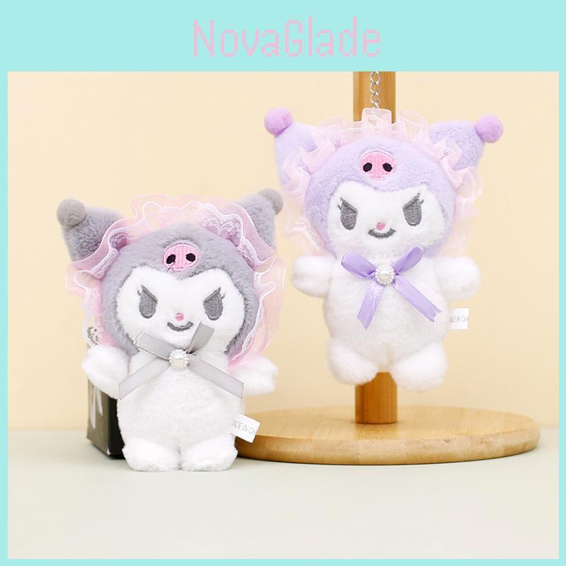Cute Sanrio Kuromi Plush Toy Keychain Adorable Short Plush Stuffed Doll 12cm
