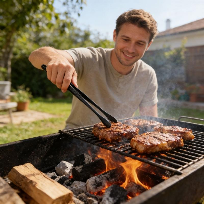652F Pack of 3 Practical Stainless Steel Grilling Tongs Dishwasher Safe Convenient Long Tweezer for Kitchen Use