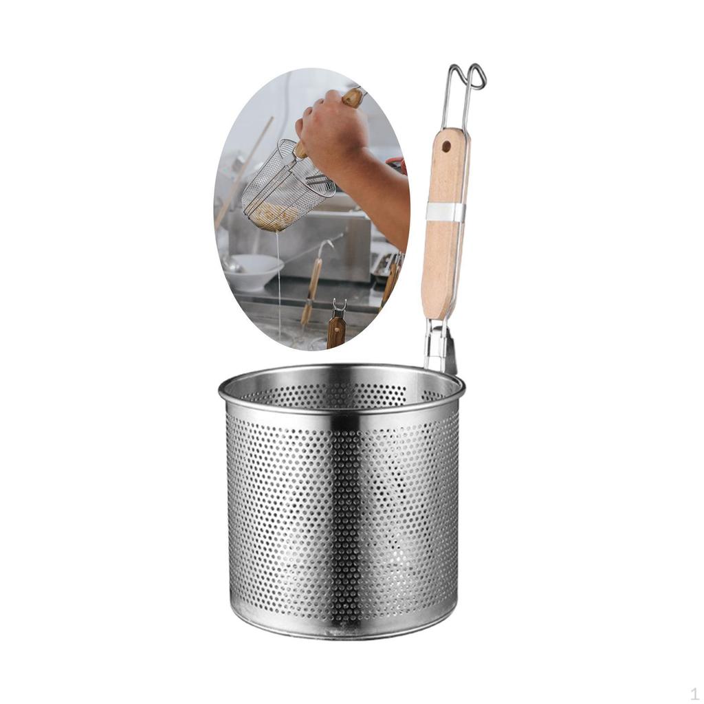Colander with Wooden Handle Mesh Noodle Baskets Spaghetti Strainer Spoon Frying Basket