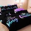 3pcs Couple's King & Queen Printed Duvet Cover SetRomantic Heart Crown Design Pink Black Contrast for Sweetness with Elegance