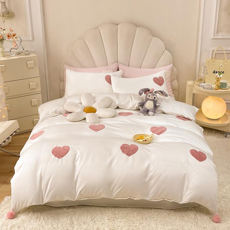 Ins Love Heart Bedding Set Princess Duvet Cover Sheets With Bedspread Single Twin Full Queen Double Size Bedroom Decor For Home