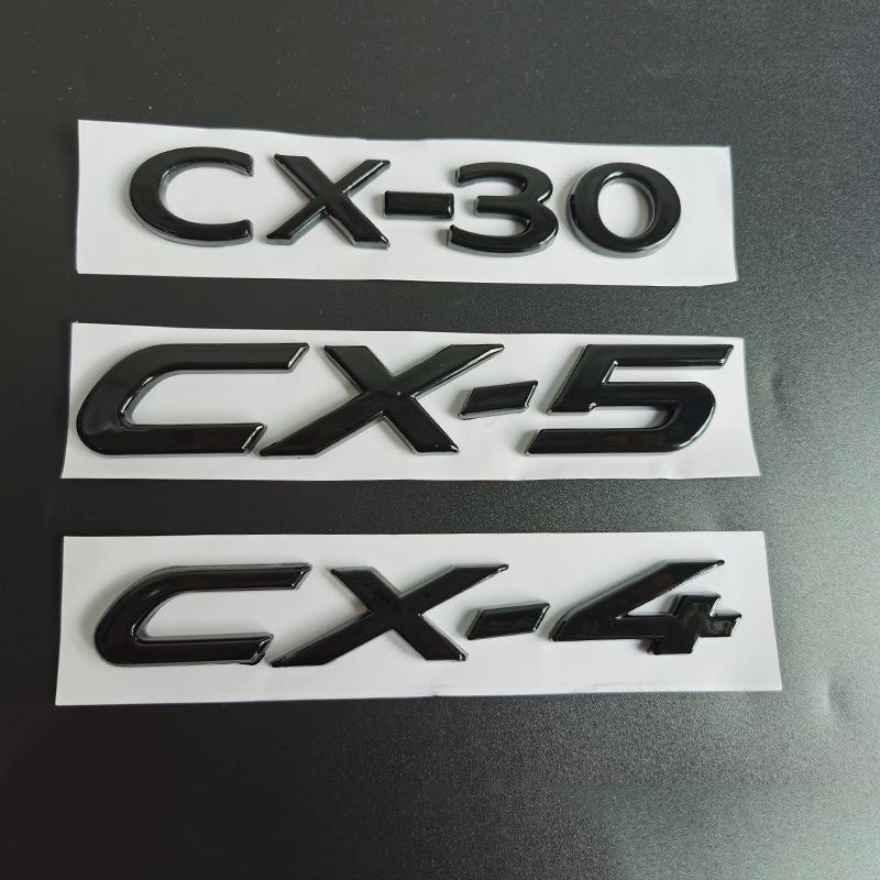 Mazda CX-30, CX-4, and CX-5 Glossy Black Badges: Numerical, Trunk Letter, and Tail Displacement Badges.