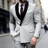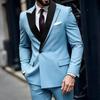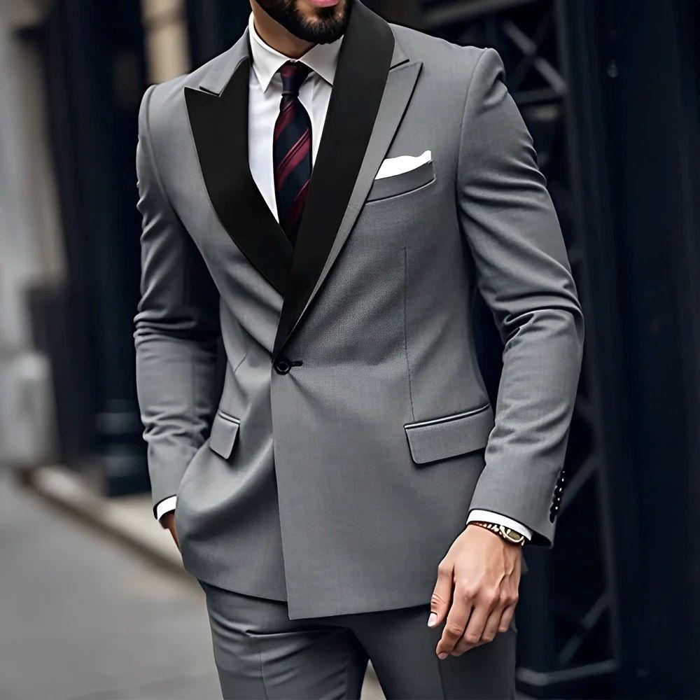 Unqiue Lapel Design Men Suits 2 Pieces Jacket Pants Sets One Button Flat Front Elegant Blazer Wedding Groom Male Clothing