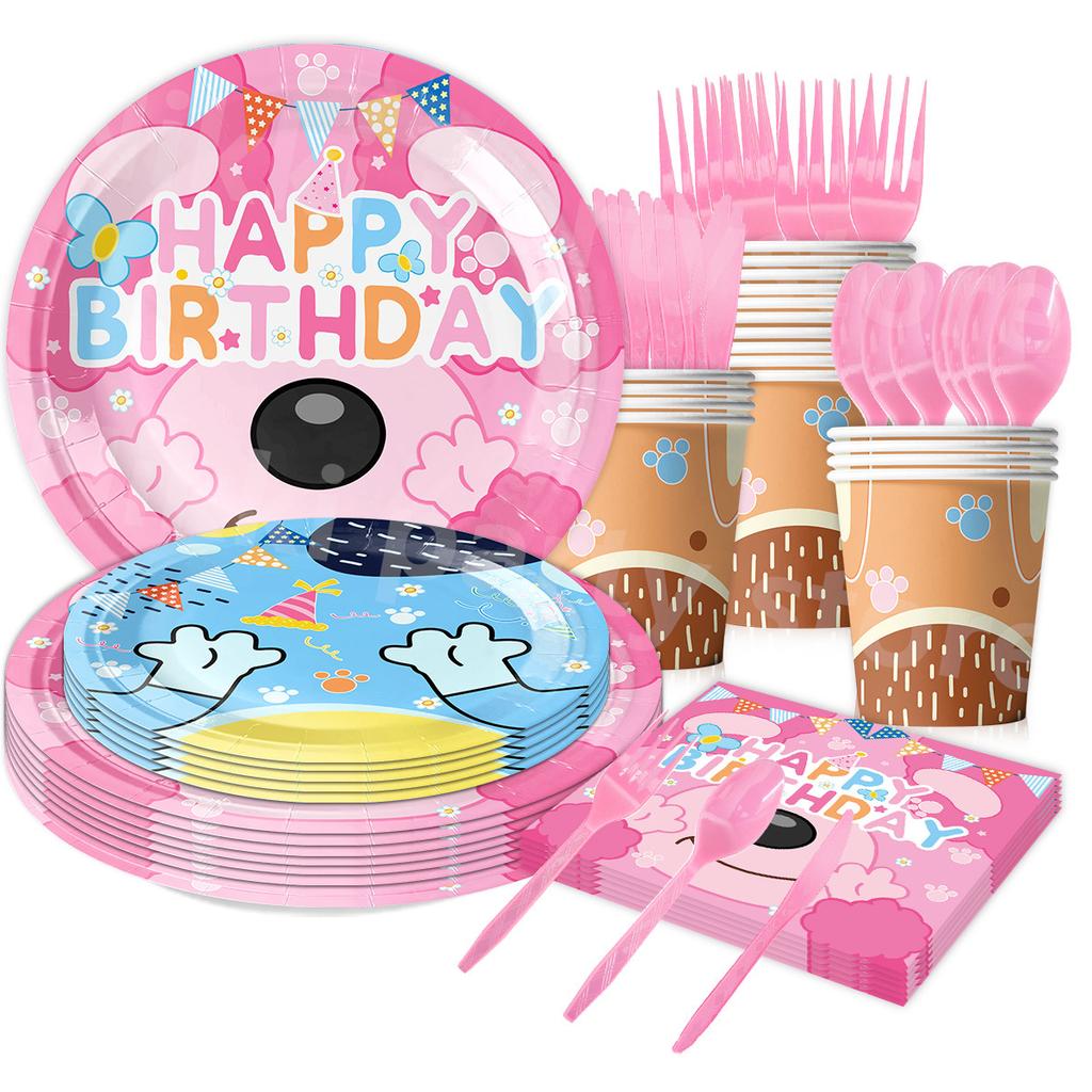 Cartoon Blue Dog Birthday Party Decoration Pink Dog Disposable Tablecloth Cup Bingo plate Baby Shower Kids Favors Party Supplies