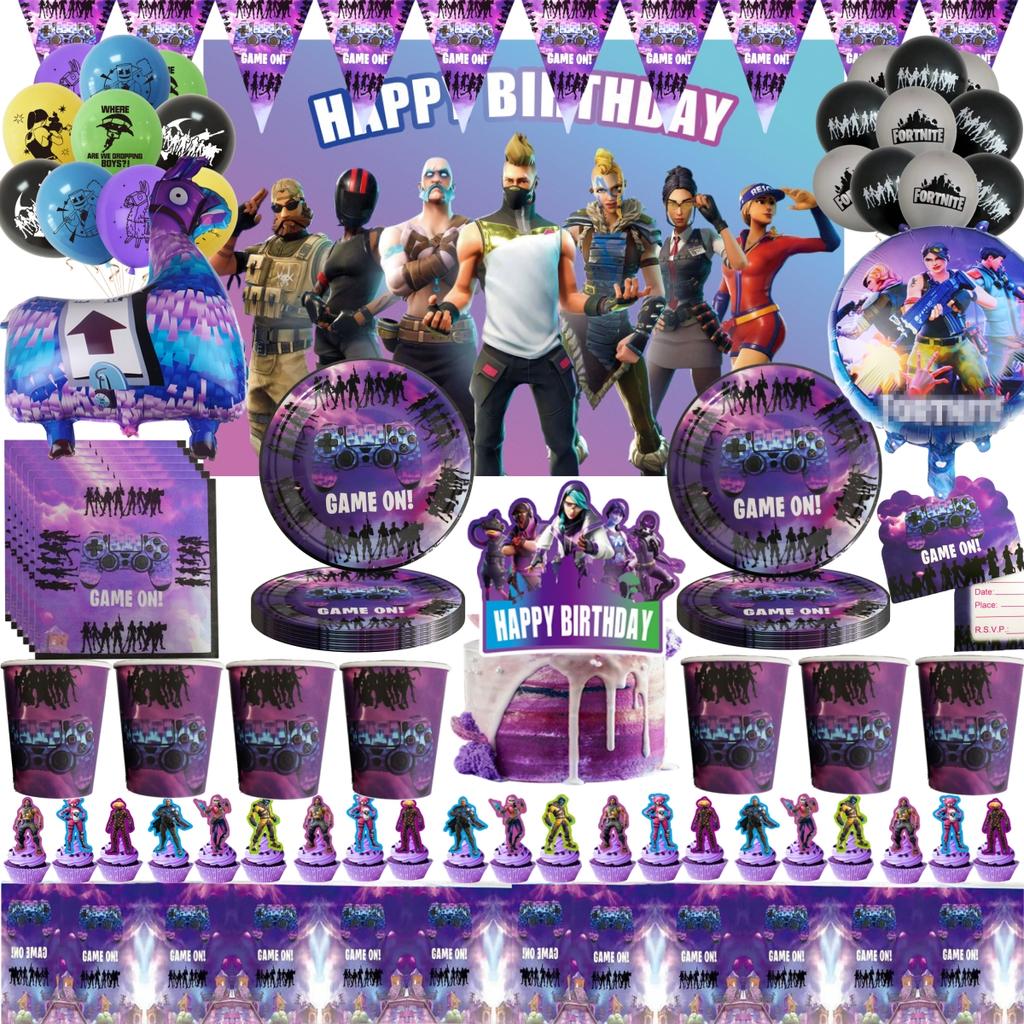 Shooting Game Fortnition Birthday Party Decoration Plate Cup Cartoon Alpaca Llama Foil Globos Baby Shower Kids Party Supplies