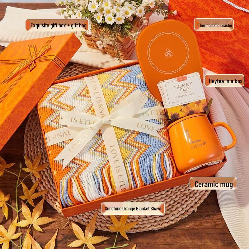 The HANDUNYOU Comfort Gift Set is a thoughtful present, perfect for corporate events, annual meetings, or Women's Day celebrations. This carefully curated set includes a soft blanket, a convenient thermos mug, and soothing longan goji berry tea, offering warmth and relaxation.