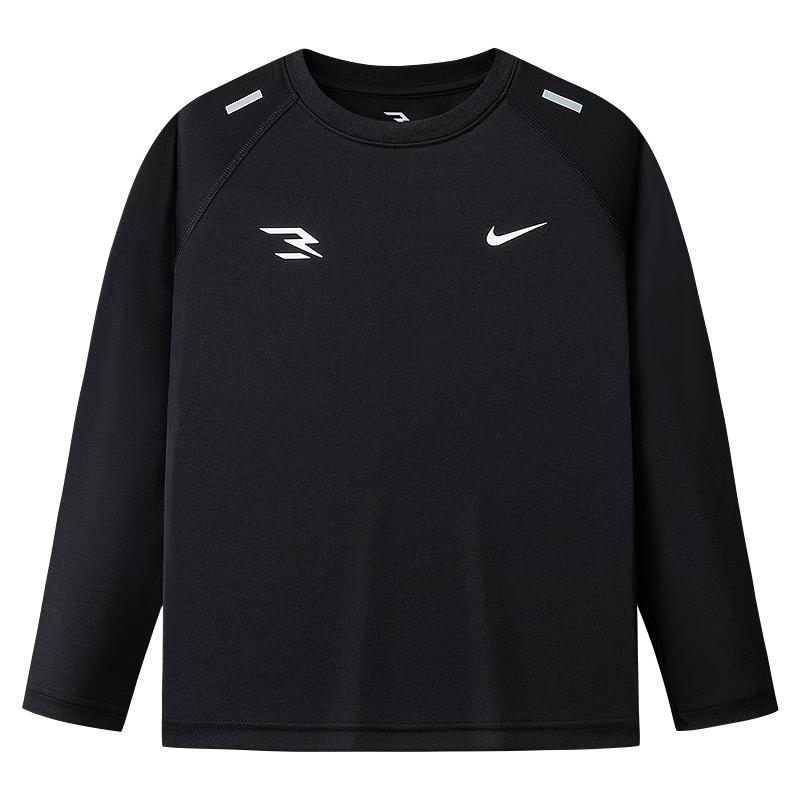 This 2025 Autumn new NIKE3BRAND Kids' Long-Sleeve T-Shirt is made from 100% polyester, offering wrinkle-resistant and quick-dry properties. Designed for boys and girls aged 6-14, it features a comfortable round neck, regular thickness, and a luminous design, perfect for spring and autumn wear.