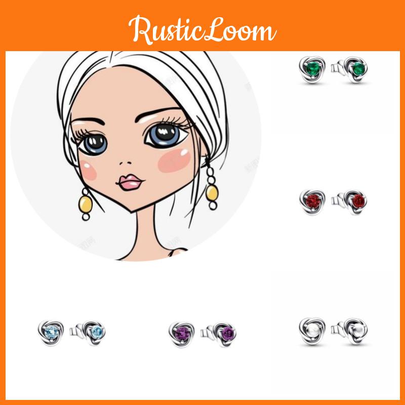 Panjia Pandora S925 Sterling Silver Earrings Geometric Shape Eternal Round Jewelry