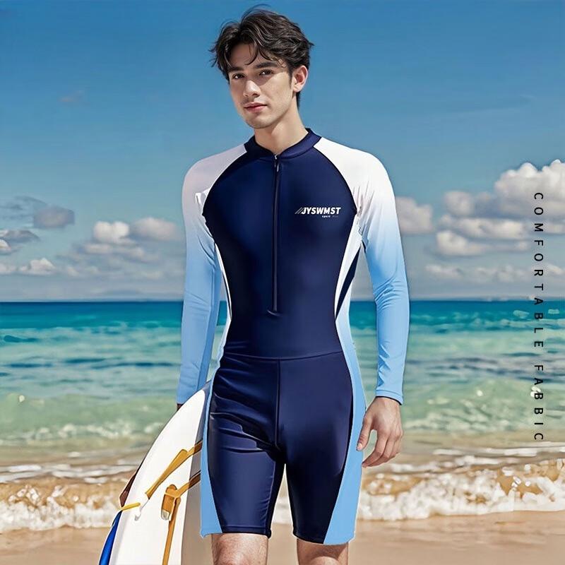 The Alliance Envoy 9051 men's long sleeve swimsuit is designed for comfort and performance. Featuring knee-length swim trunks and crafted from durable polyester, it's suitable for adults and teenagers.