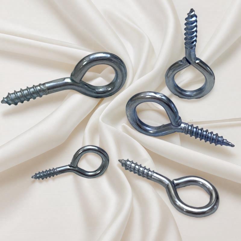 Blue & White Zinc-Plated Hardware Pendant with Eye Screws - Self-Tapping, Pointed Head, Wood Grain Wind Hook for Lamps, New Chinese Style.