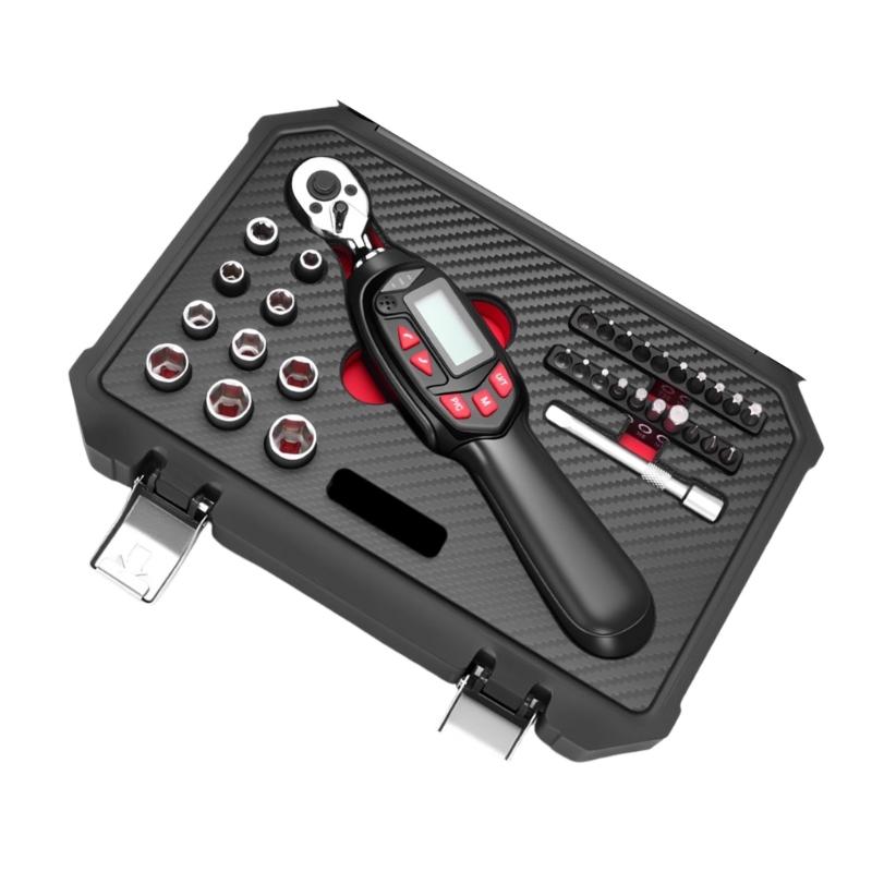 32pcs/set Torque Wrench Kit with Digital Display and Multiple Bit for Motorcycle Maintenance 1/4inch Drive Spanner