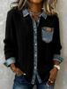 European Style Knit Patchwork Denim Shirt - Women's Autumn/Winter Long Sleeve Cardigan