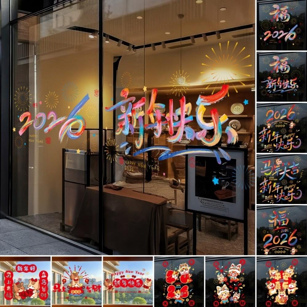 Large Size 2026 New Year Window Stickers Year of Horse Gifts PVC Festival Stickers Household