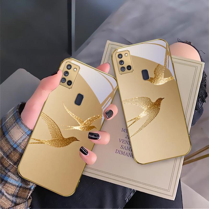 golden flying bird For Samsung A 31 32 A33 A34 35 14 A15 13 A16 25 26 50 52 53 54 55 56 70 71 72 73 Golden glass phone case