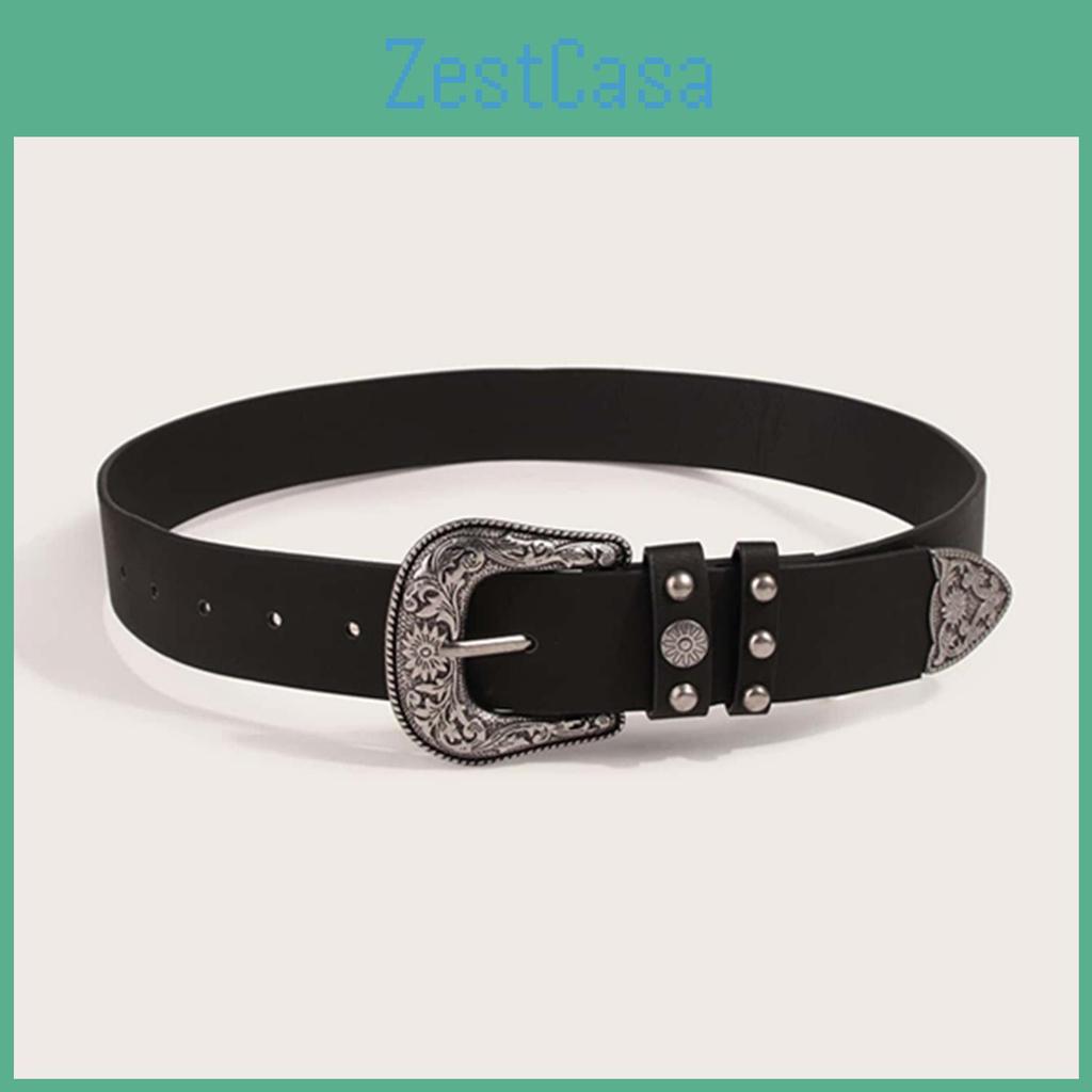 Retro Art Deco Womens Faux Leather Belt With Metal Buckle For Summer