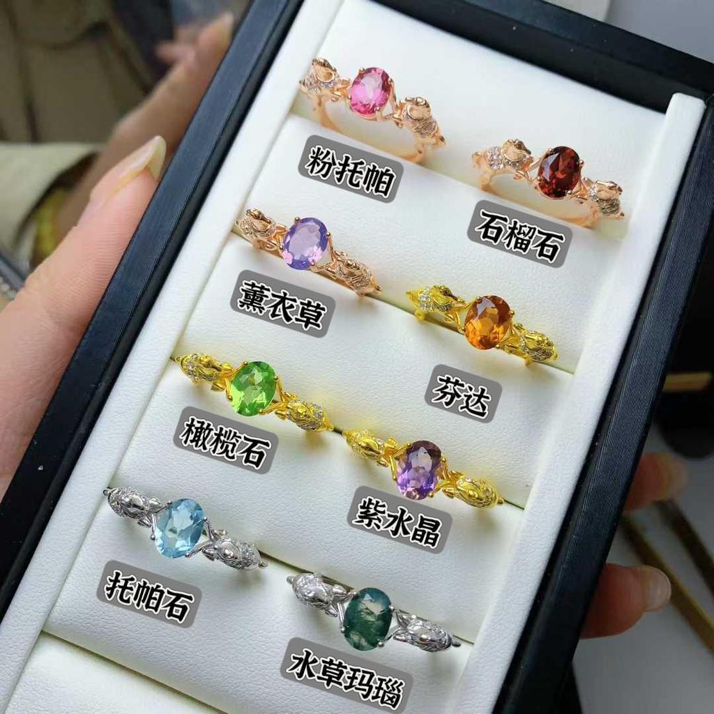 925 Sterling Silver Open Ring with Natural Gemstones and Horse Design - Luxurious High-End Feel