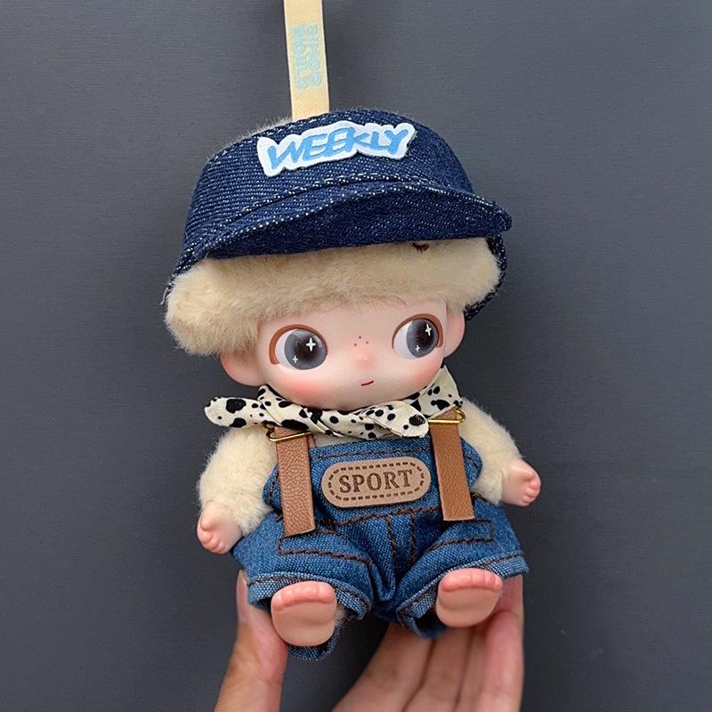 In Stock: Cute Denim Cap & Overalls Set for Dimo Newborn Diary Doll - Plush Toy Blind Box Clothes