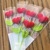1Pcs Crochet Flower Bouquet Handmade Heart Flower with Double Leaves Knitted Artificial Flower Branch For Valentine's Day