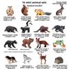 סט דגמי חיות בר זה כולל דמויות פלסטיק ריאליסטיות המיועדות למטרות דקורטיביות וחינוכיות.. כל סט כולל 14 עד 16 דמויות חיות מיניאטוריות בגודל של כ-2 עד 4 ס"מ, עשויות מחומר פלסטיק עמיד.. הדגמים הסטטיים הללו מתארים במדויק חיות בר שונות מיערות וג'ונגלים.