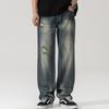 Men's Summer 2024 American-Style Ripped Jeans: Straight, Loose, Wide-Leg Casual Washed Trousers