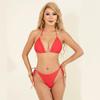 European & American Tie-Up Style Solid Color Bikini Swimsuit